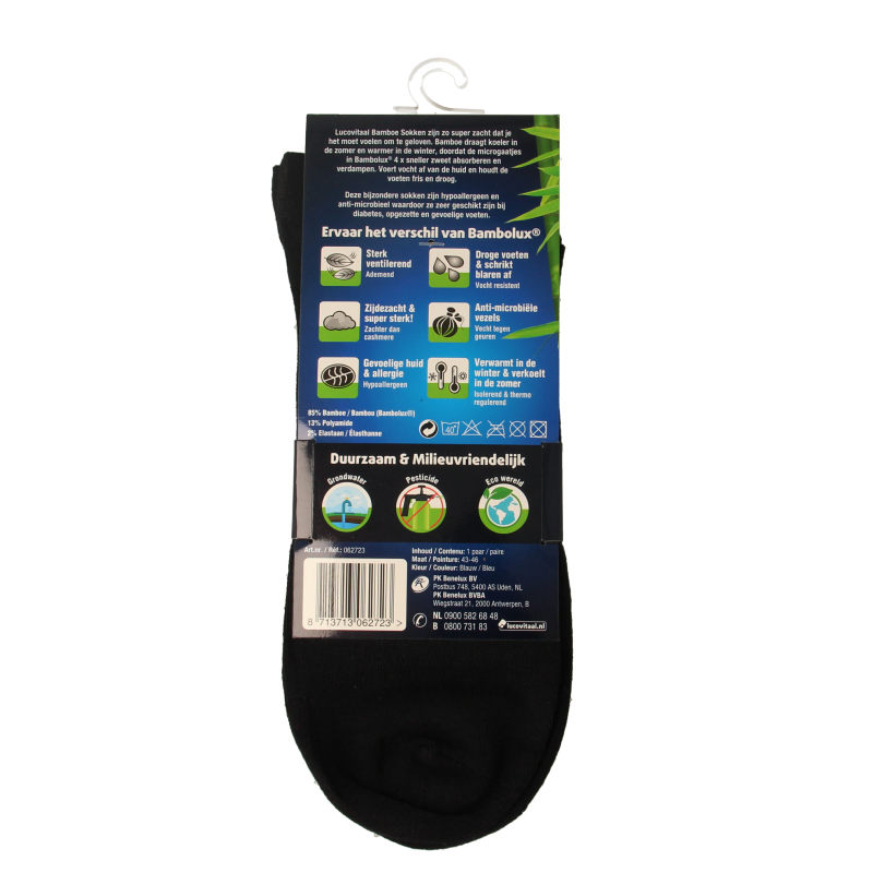 Lucovitaal Bamboe sokken zijn zo super zacht dat je het moet voelen om te geloven. Bamboe draagt koeler in de zomer en warmer in de winter, doordat de microgaatjes in Bambolux® 4x sneller zweet absorberen en verdampen.