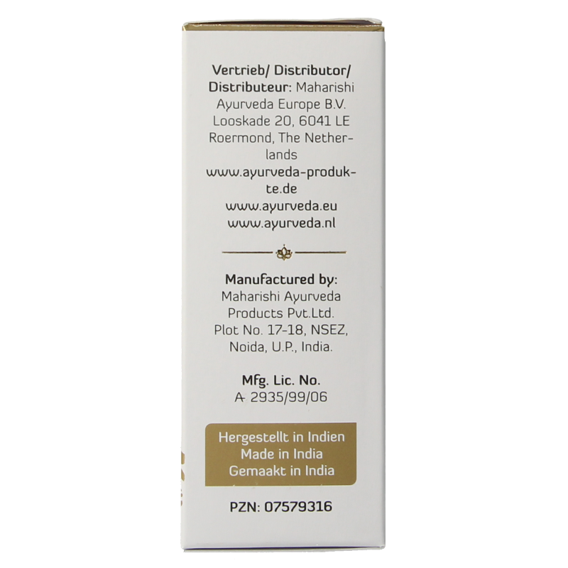 Maharishi Ayurveda Nasya-olie voor de verzorging van de huid van de neus bestaat uit een scala aan weldadige kruiden, oliën en specerijen. Met vetiver, cypergras, kaneel, kardemom, sandelhout.