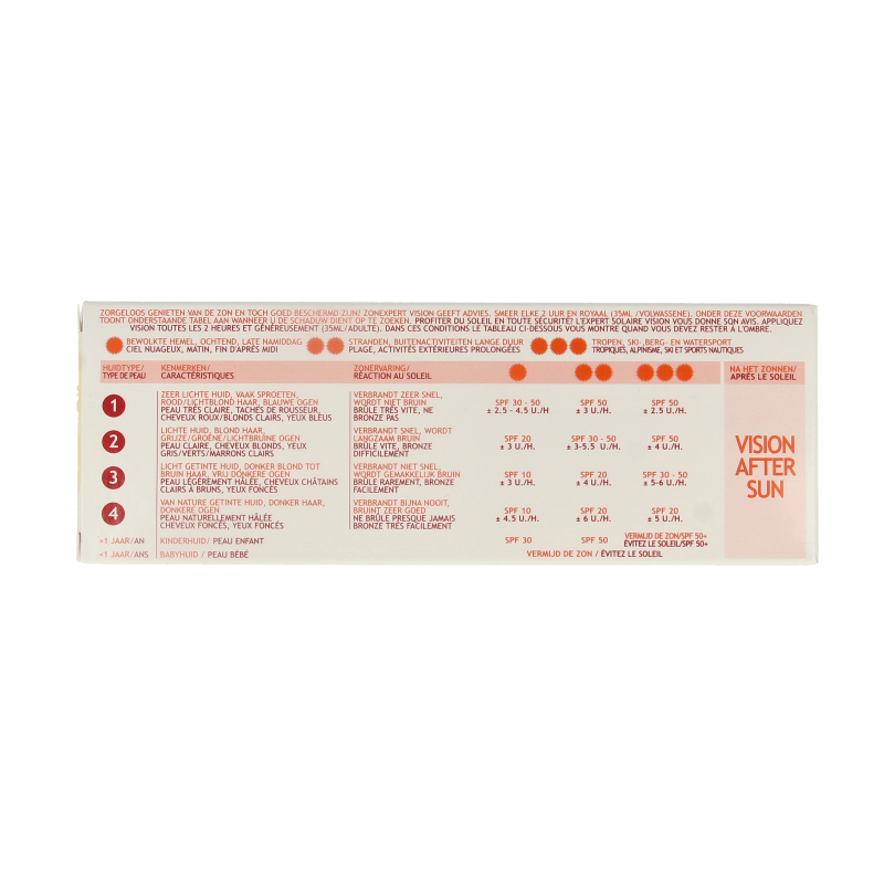 • Breng Vision minimaal 15 minuten voor het zonnen aan op de huid. Vision treedt in werking wanneer de huid wordt blootgesteld aan daglicht.