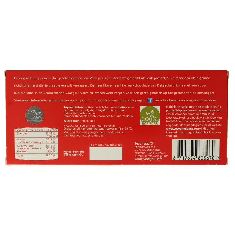 Voor Jou! Wensreep melkchocolade gefeliciteerd 70 Gram