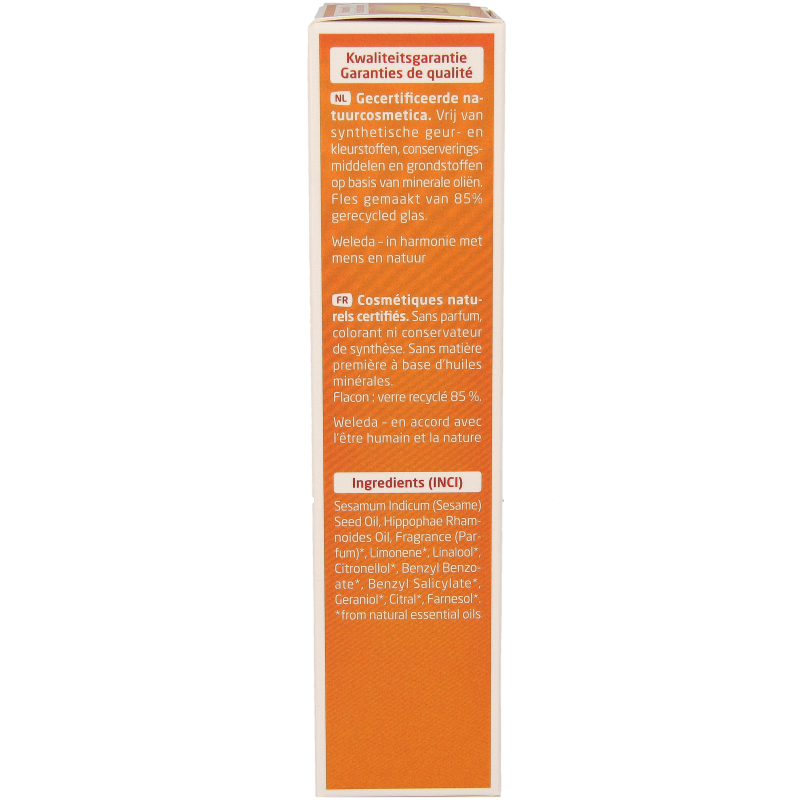 Sesamum Indicum (Sesame) Seed Oil, Hippophae Rhamnoides Oil, Rosmarinusofficinalis (Rosemary) Leaf Extract, Fragrance (Parfum)*, Limonene*, Linalool*, Citronellol*, Benzyl Benzoate*, Benzyl Salicylate*, Geraniol*, Citral*, Farnesol*. *verkregen uit natuurlijke etherische oliën